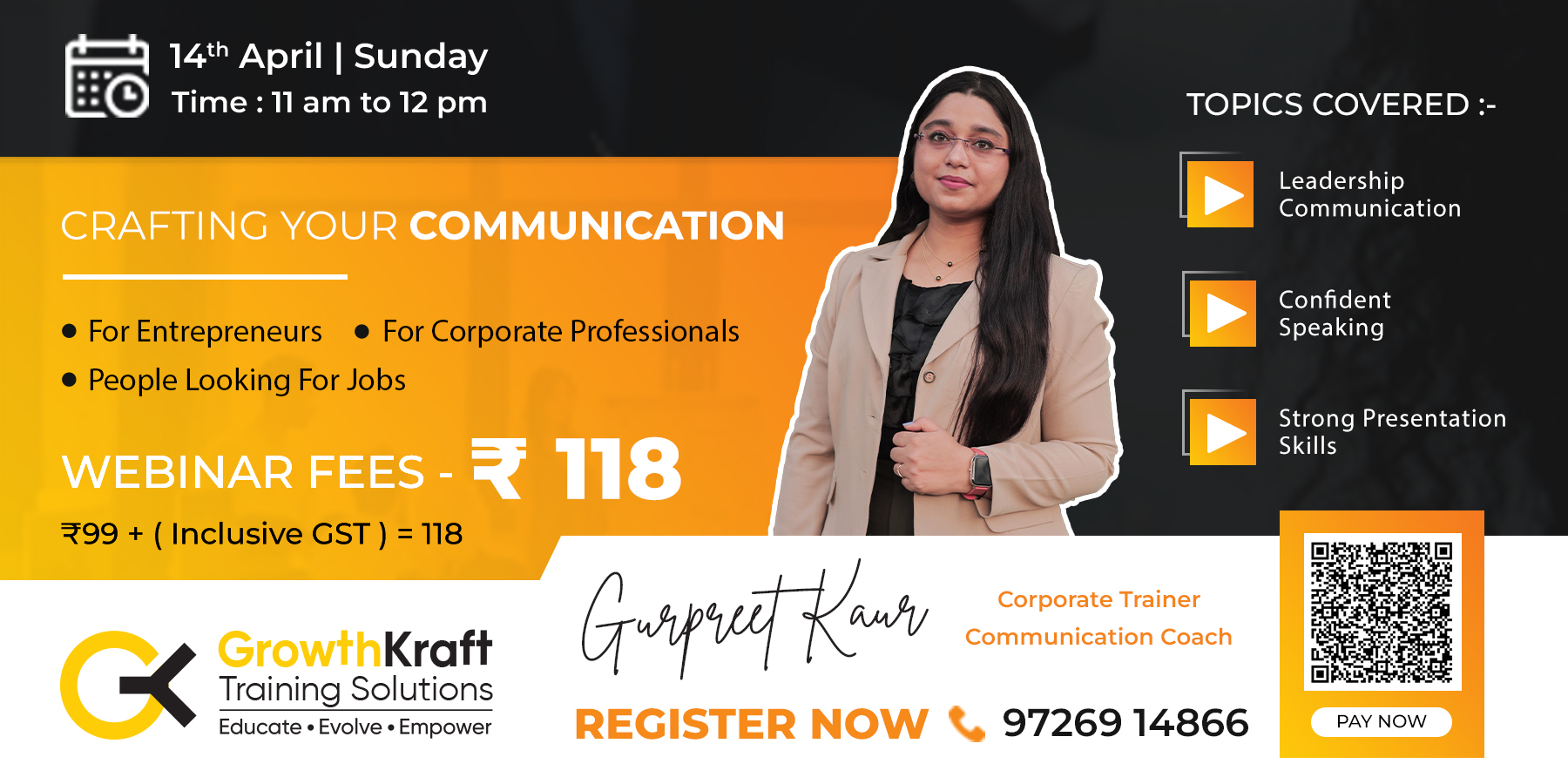 join us for an engaging workshop titled "Crafting Your Communication" conducted by Gurpreet Kaur, a seasoned Corporate Trainer and Communication Coach.